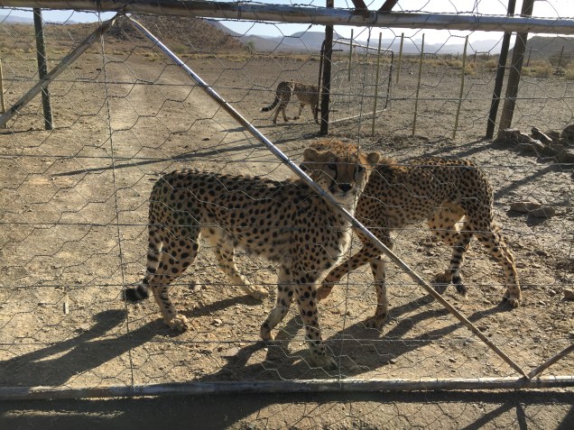 Of course, the most important responsibility of the volunteers was feeding the cheetahs. At the time of my stay, Neuras had seven adult cheetahs in a 50 hectare enclosure. Every morning we would have to pull a frozen slab of meat out of the freezer for it to thaw by the afternoon, although it was often necessary to aid the thaw process for such a thick piece by hosing it down and prying it apart with a dull knife. A few staff members were responsible for hunting in order to feed the cheetahs and the lodge, but they would choose animals that were abundant in our game counts, like oryx, springbok, zebra, or ostrich. Incidentally, I definitely saw more dead animals that week than live ones and the smell of rotting flesh will forever be linked in my mind with Neuras.
