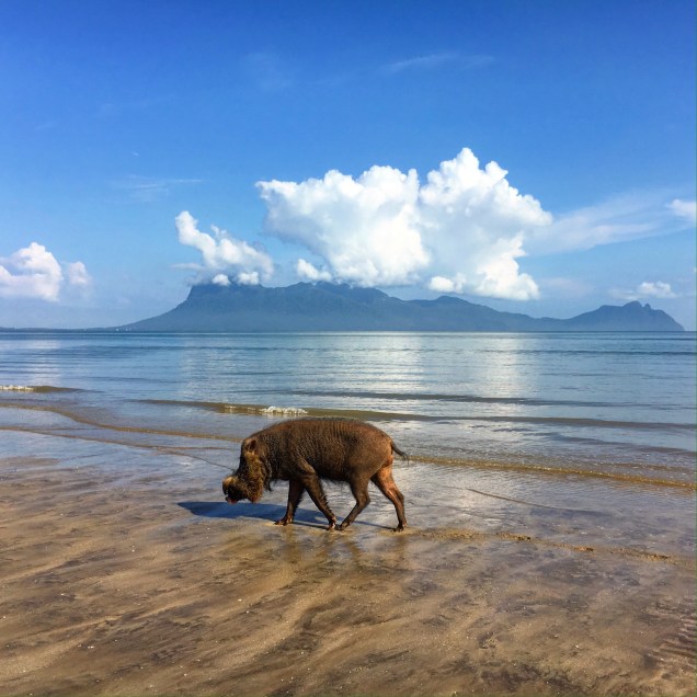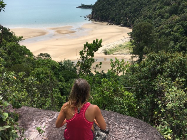 The first day Robyn and I, with the Australians for part of it, hiked to (…..). We encountered few people along the way and once we reached the viewpoint, I couldn’t believe no one else was there. It was stunning and virtually empty. A single macaque cautiously edged his way across the vacant beach. I remember feeling immensely grateful for being there. It was my birthday (my second away from home if anyone is counting) and here I was in one of the most remote places on the planet, overlooking a secret beach. I had to get closer. Robyn had enough so I descended on my own. Even though there was a crude sign drawn into the sand, indicating a boat pickup at 4:30pm, there were no footprints and no other sign of human presence (i.e, there was no garbage). I don’t know what this says about me, but the remoteness of my situation made me smile and gave me a giddiness I can’t explain or control. When I returned to Robyn on the cliff, I had a renewed spring in my step.