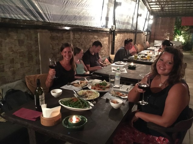 Later that afternoon, we packed up and left this little bit of wild territory. We were bound back to Kuching and because the birthday fare left much to be desired in the park, Robyn and I were keen to go out for a respectable meal in the city. Because I had been eating my way through Kuching already, I knew that I wanted to try Bla Bla Bar for my final meal before I flew to Singapore the next day. On Southeast Asian standards, Bla Bla was five star. The food was served in excessive quantities, was exceptionally delicious, and had a price tag to match….AND they had wine! We gorged on sea bass and shrimp and green beans and it was a meal for the ages with even better company.