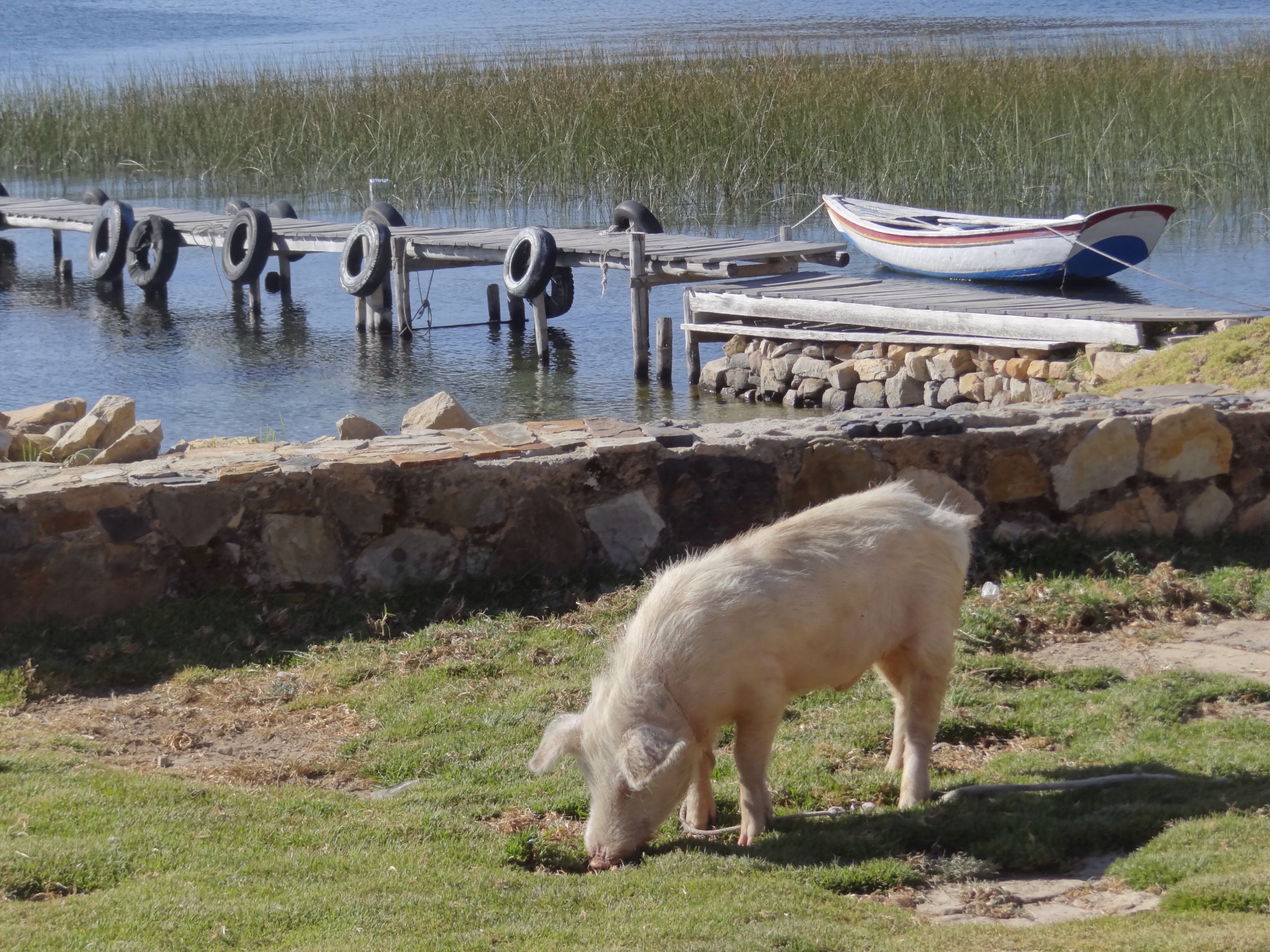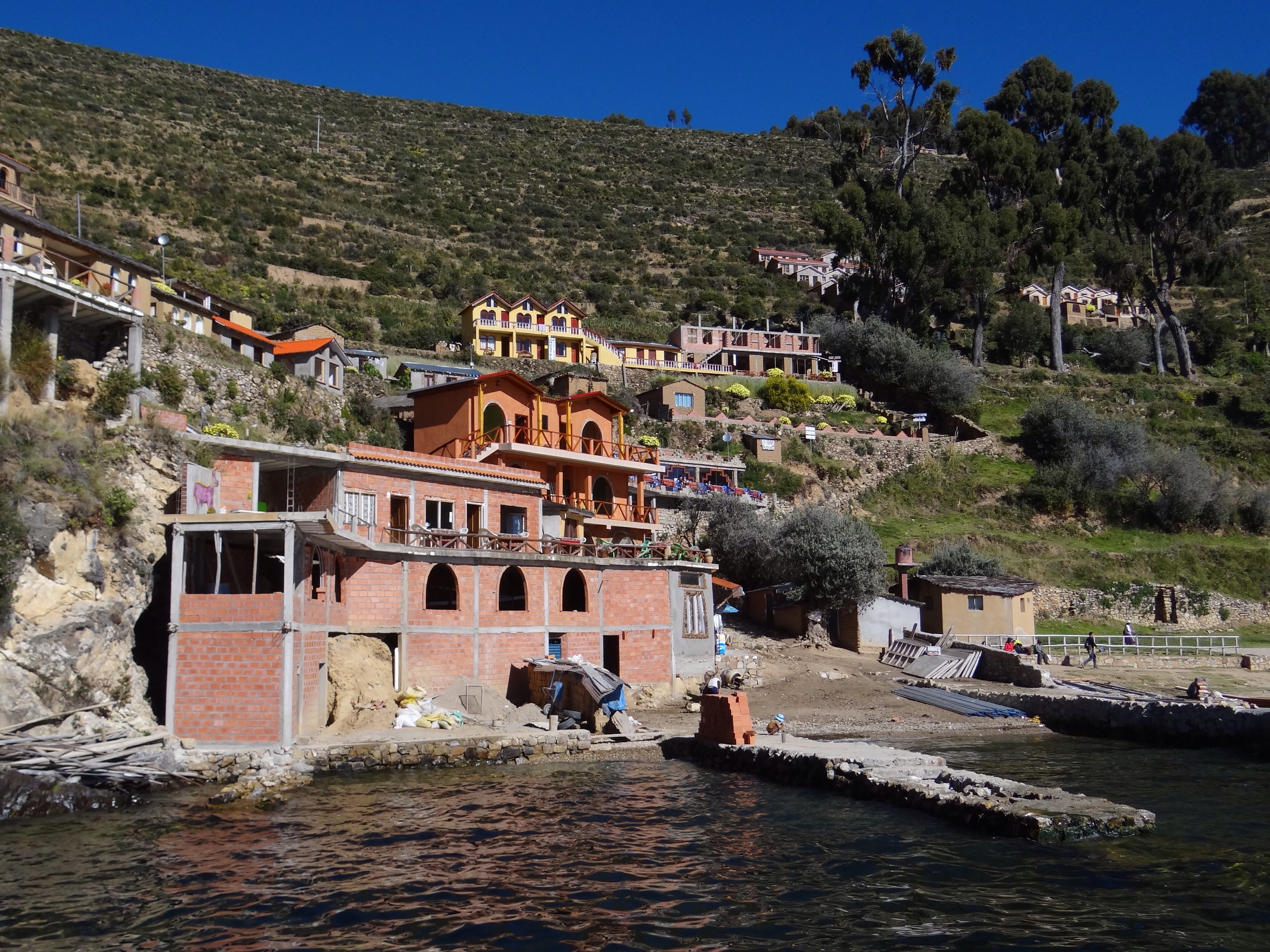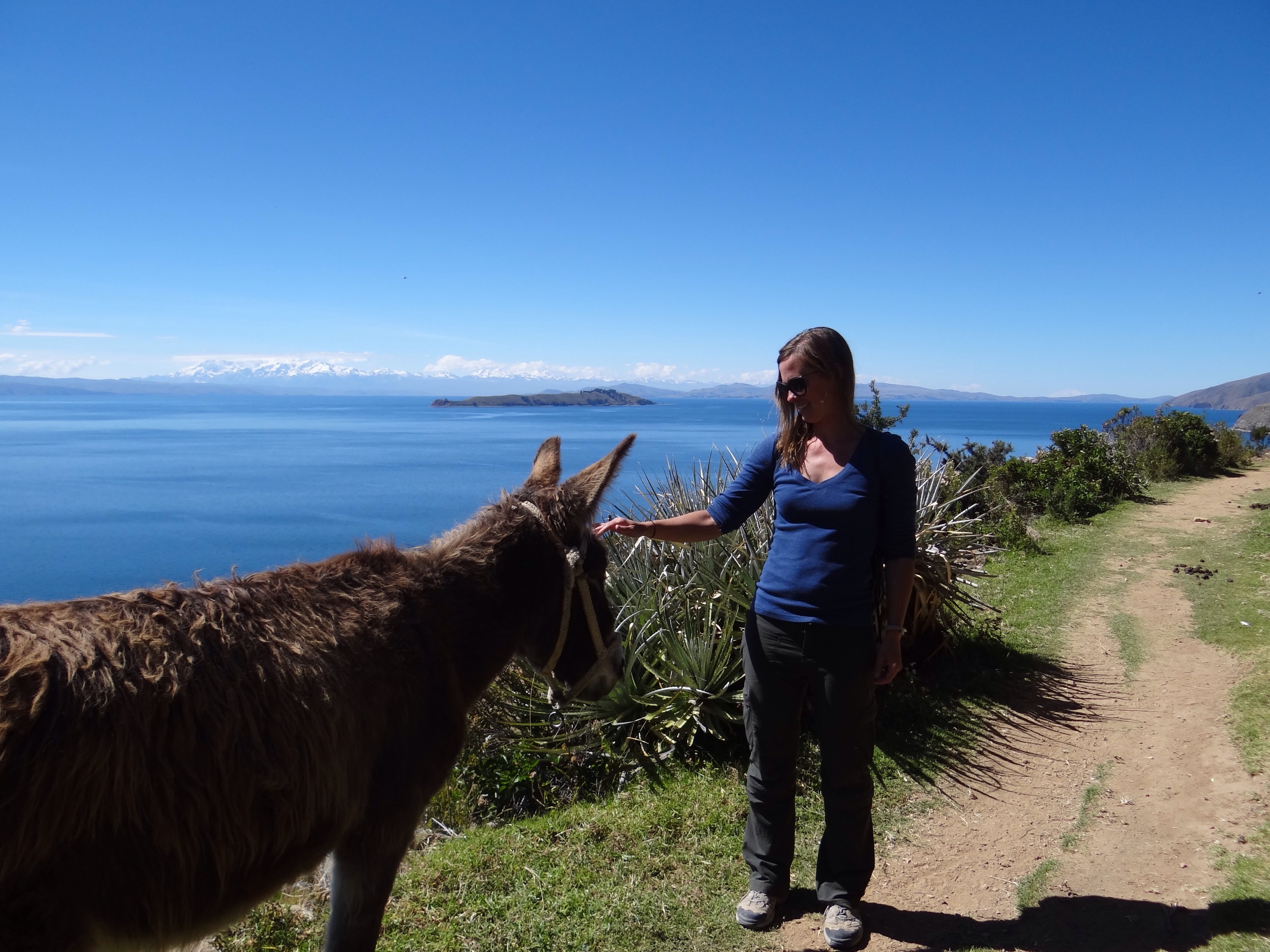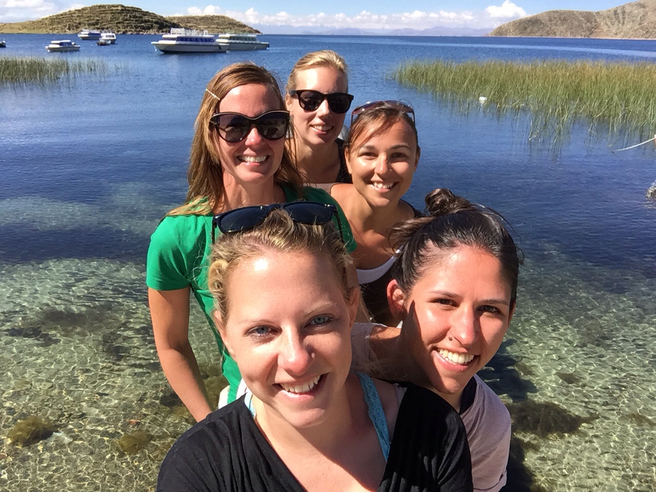 Few people visit Copacabana without also visiting Isla del Sol, the island located offshore, where internet doesn’t exist and llamas are more populous than people. For about $3, you can take a ferry to Isla del Sol for either a day trip or to spend the night. I wanted to spend at least one night with the possibility of two. By this time, my forward planning abilities extend to about 12 hours so I had no idea what to do when I got there, but I definitely wanted to experience this little island paradise. Upon arrival, I met 4 girls from Switzerland, Stefanie, Laura, Simona, and Yvonne, who were negotiating accommodations with the locals. Local innkeepers from both downhill and uphill were awaiting us and offering a room for the night. Downhill meant that the inn would be less than a 5 minute walk from the port and also seemed more expensive. Uphill meant that we would have to trudge up a steep incline to the “town” for about 30 minutes with our luggage and get to pay a lesser price. Mind you, the difference was $12 for downhill or $6 for uphill. I overheard one of the Swiss girls tell the downhill innkeeper that his accommodations were too expensive so I followed suit and said the same. In hindsight, this seems negligible under the circumstances but the sunrise we were treated to from up on that hill was unmatched (and I am admittedly, NOT a sunrise person).