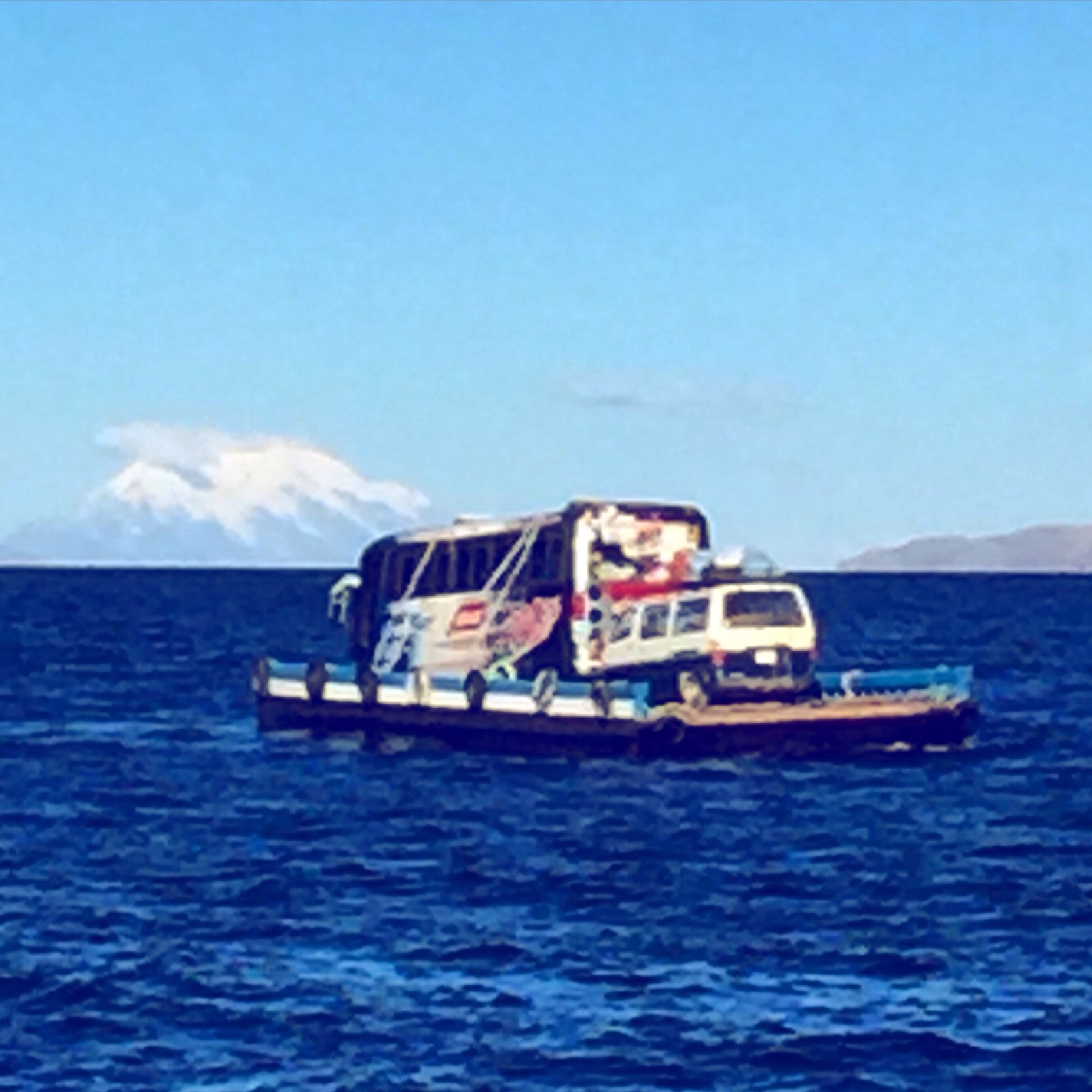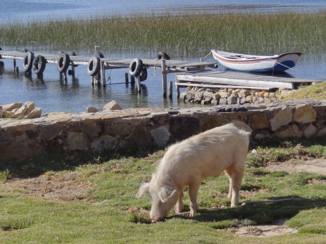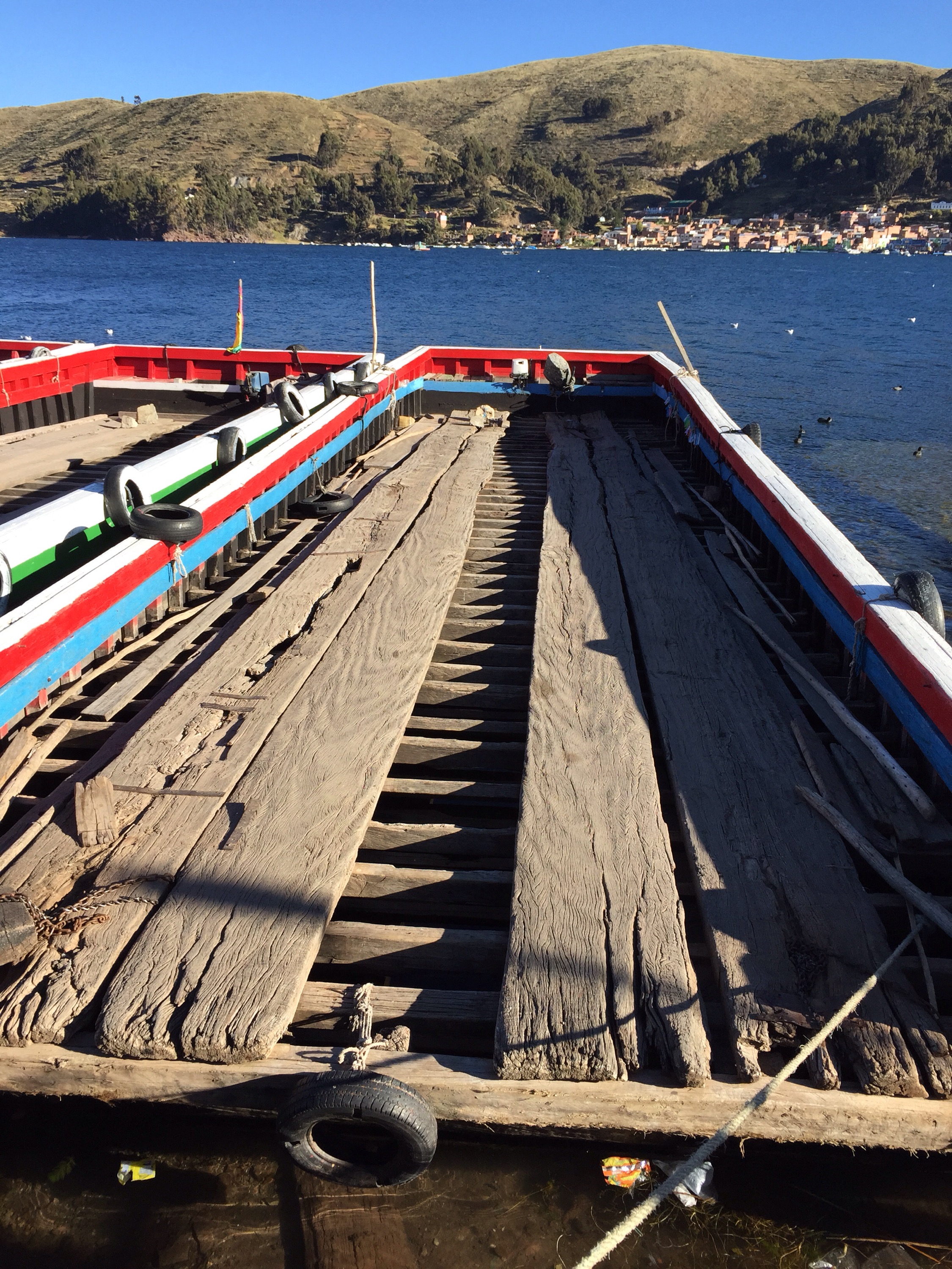 It takes only 3 hours to reach Copacabana from La Paz and I was looking forward to the quiet a few days at the lake would promise. However, this was no ordinary bus ride and I was soon to learn that the travel wizards had a surprise for me before I could relax. Final arrival in Copacabana required a ferry ride both for myself….and the bus. I’ve never seen anything quite like it, but alas, this is routine procedure in this part of the world and I could do nothing but watch.