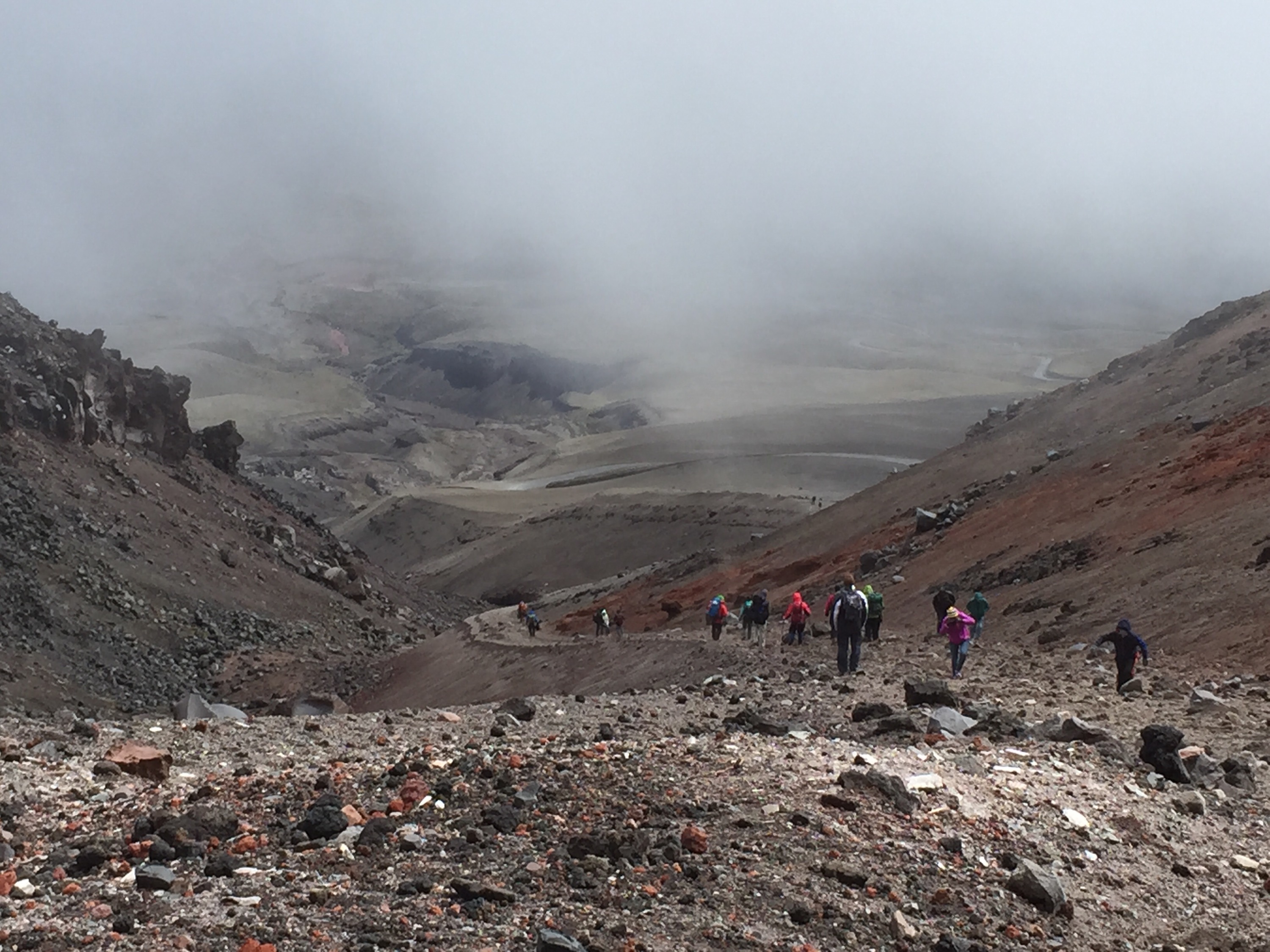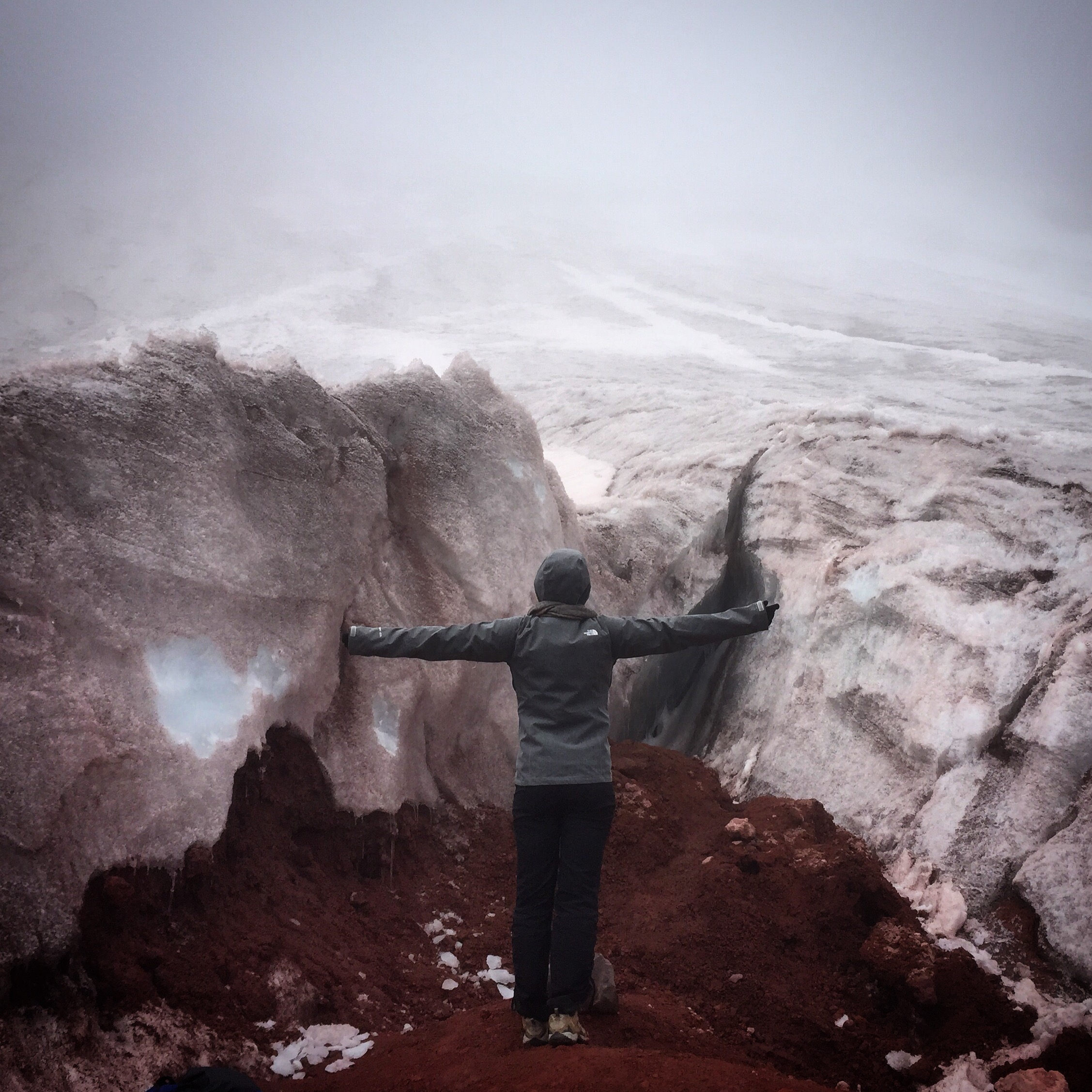 Whether it be 3 hours or 3 days, any sort of climb at altitude is taxing. This was no exception. The ground was loose volcanic rock that would slide when you stepped on it, so that you take one step forward and half a step back. Snow and ice pellets blew through the air – it was unclear if it was new precipitation or if the constant barrage of wind was blowing it from the ground. Most of the time, I couldn’t see anything more than 10 meters away, only snow and rocks. My flimsy cotton gloves were hardly sufficient. Upon reaching the glacier, I took a few hurried photos to remind myself not to do this again and jetted back to the car, well ahead of my guide and 3 other hikers. The downhill biking option that had sounded easy at the beginning of the day, was much less appealing when your fingers are frozen and you have dust in your throat and eyes. I opted out.