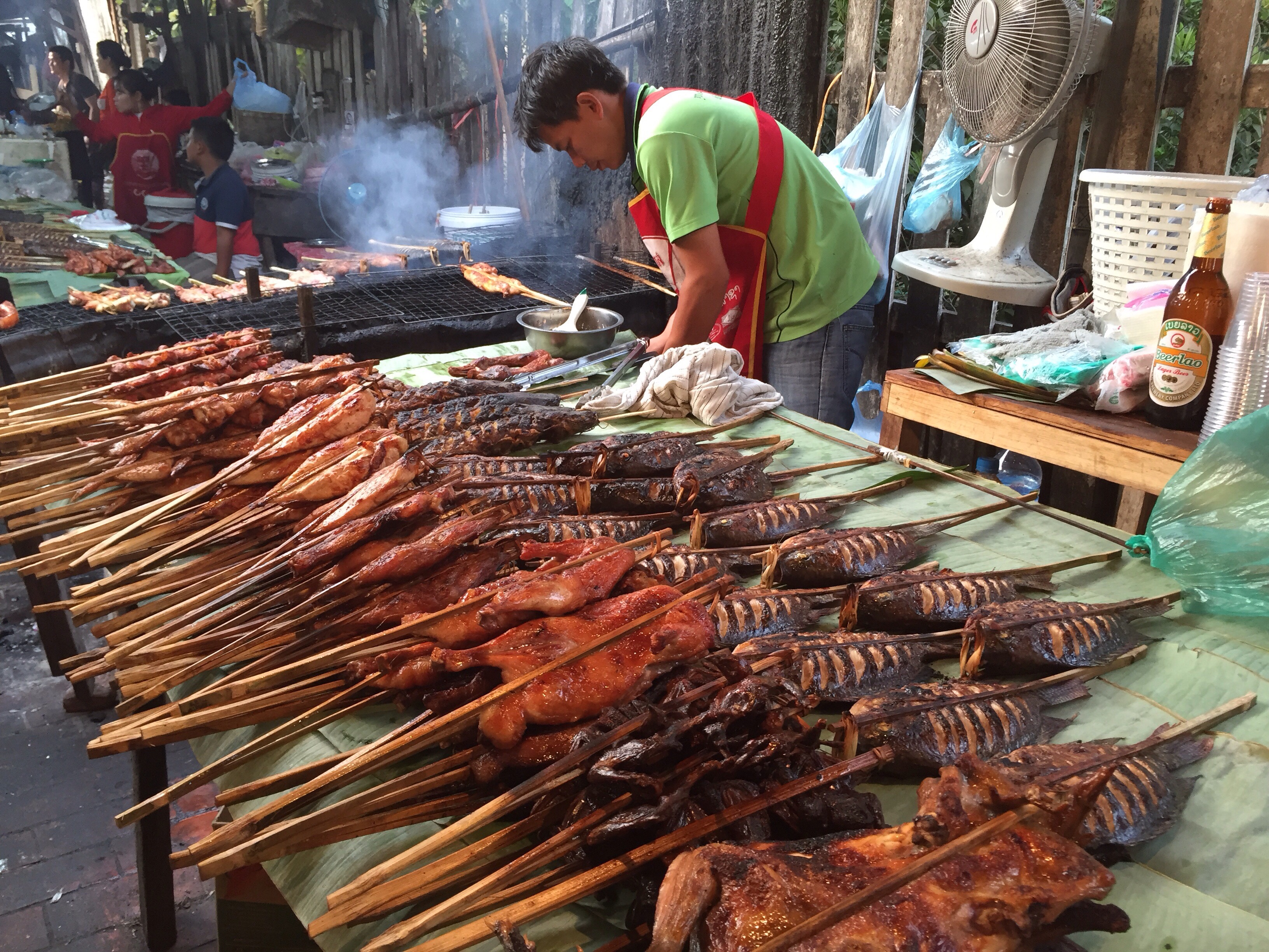 While I wasn’t expecting to leave so soon, I said goodbye to Darcey at this time before she made the slow boat journey to Thailand and beyond. We met one last time for the traditional Luang Prabang buffet line. In a back alley, there are loads of vendors displaying their dishes of noodles and rice and vegetables and unidentifiable meat. For only $3, you are provided a large bowl that you can fill as much as you are able with loads of different delicacies. We chose the vegetarian buffet because….well you know. The meat buffets, while not highly desirable for me anyway, usually included at least one staff member that would fan away the flies. So…vegetarian it is! Delicious and good value, I highly recommend at least one visit if you ever find yourself in Luang Prabang.